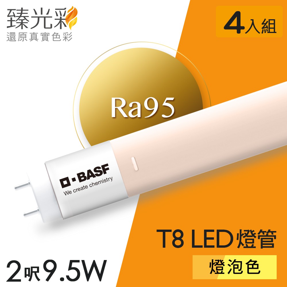 【臻光彩】LED燈管4入組_T8 2呎 9.5 W 小橘護眼_燈泡色4入組(/德國巴斯夫專利技術)