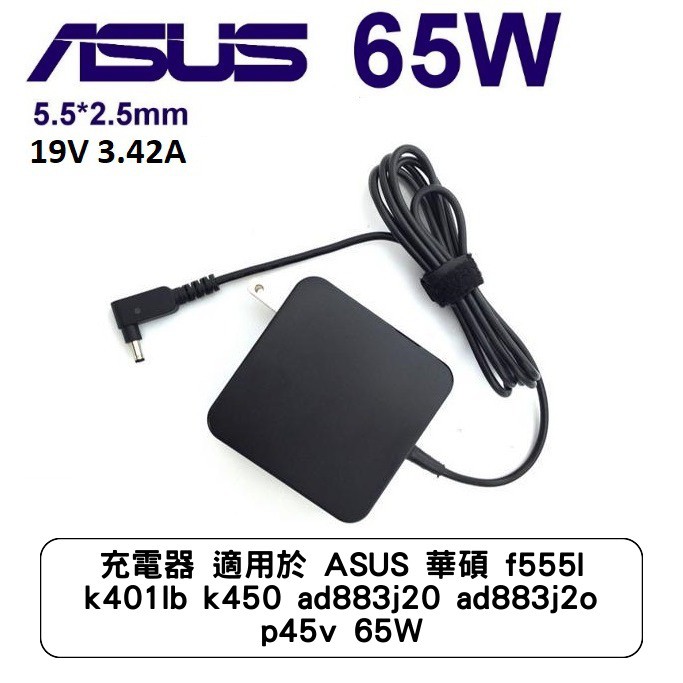 充電器 適用於 ASUS 華碩 f555l k401lb k450 ad883j20 ad883j2o p45v 65W