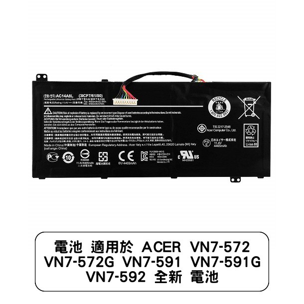 電池 適用於 ACER VN7-572 VN7-572G VN7-591 VN7-591G VN7-592 全新 電池