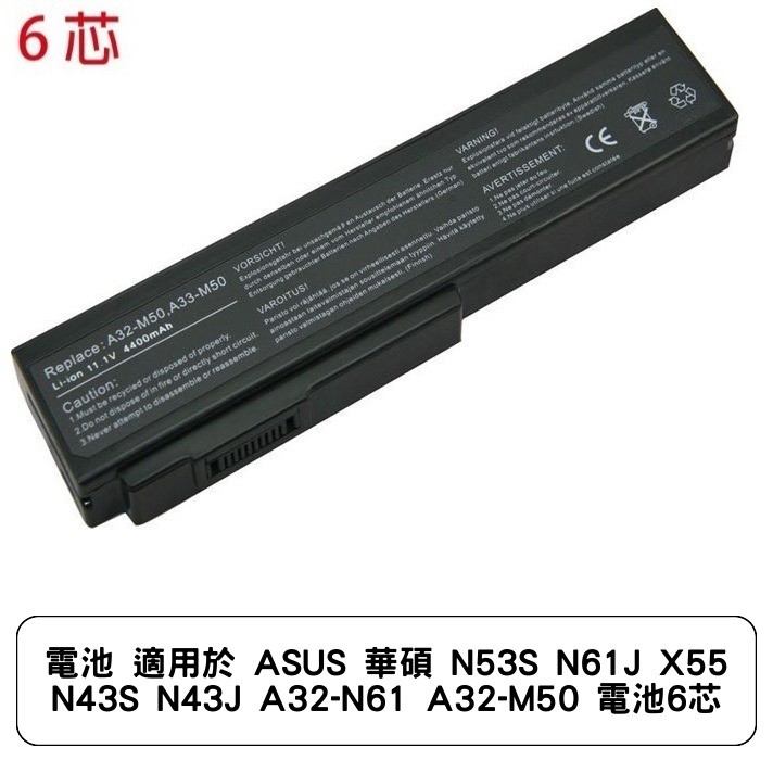 電池 適用於 ASUS 華碩 N53S N61J X55 N43S N43J A32-N61 A32-M50 電池6芯