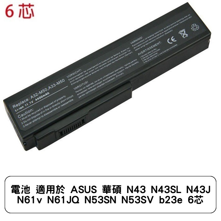 電池 適用於 ASUS 華碩 N43 N43SL N43J N61v N61JQ N53SN N53SV b23e 6芯