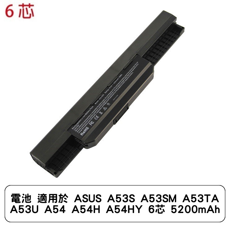 電池 適用於 ASUS A53S A53SM A53TA A53U A54 A54H A54HY 6芯 5200mAh