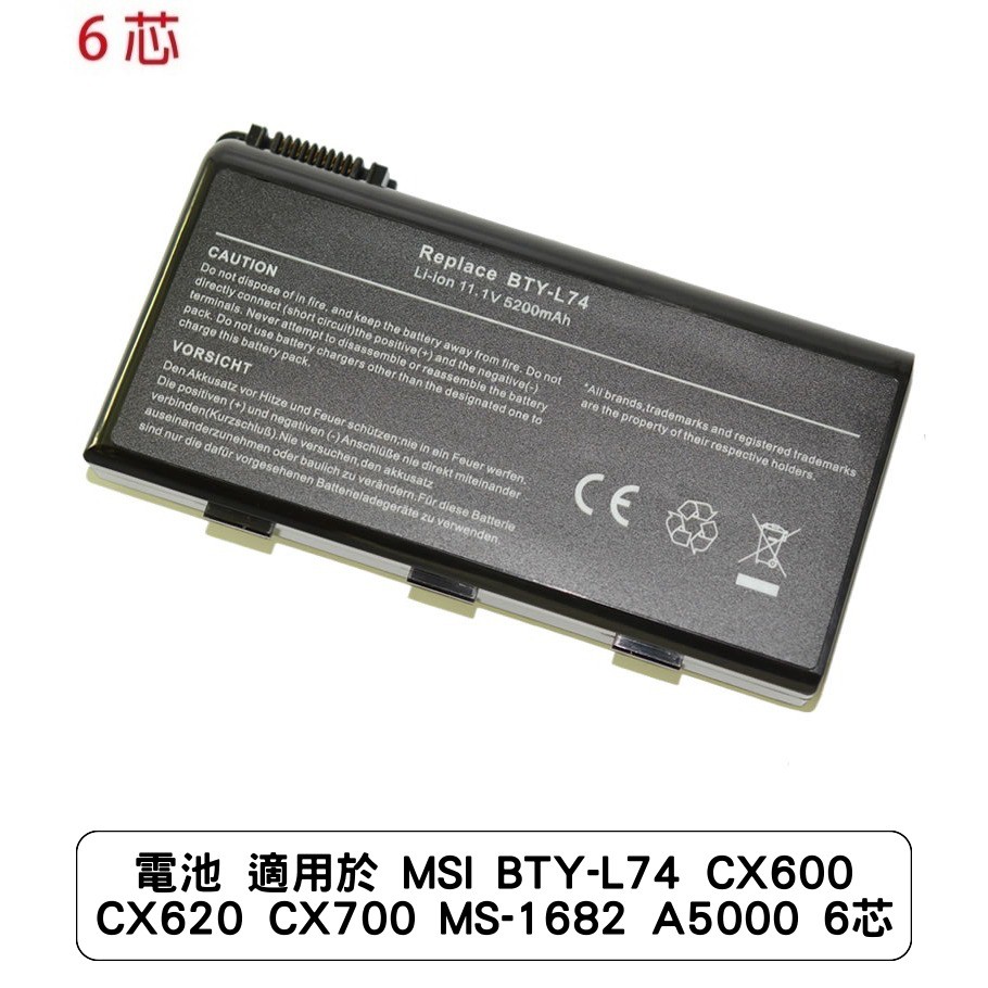 電池 適用於 MSI BTY-L74 CX600 CX620 CX700 MS-1682 A5000 6芯