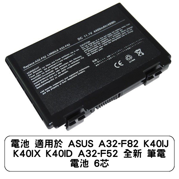 電池 適用於 ASUS A32-F82 K40IJ K40IX K40ID A32-F52 全新 筆電 電池 6芯