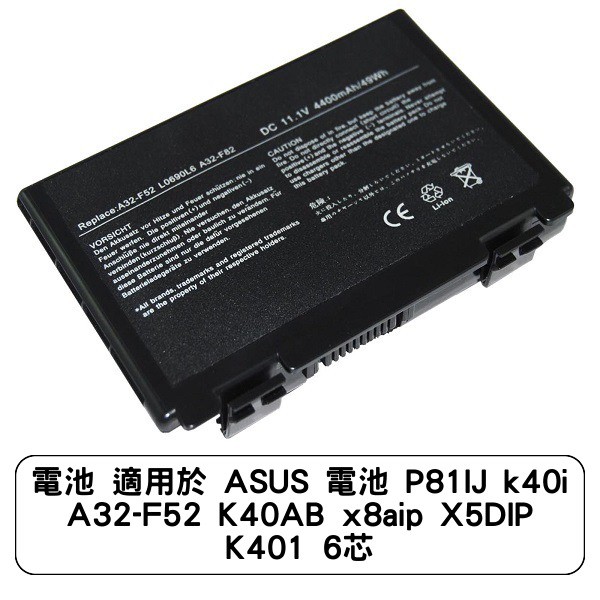 電池 適用於 ASUS 電池 P81IJ k40i A32-F52 K40AB x8aip X5DIP K401 6芯