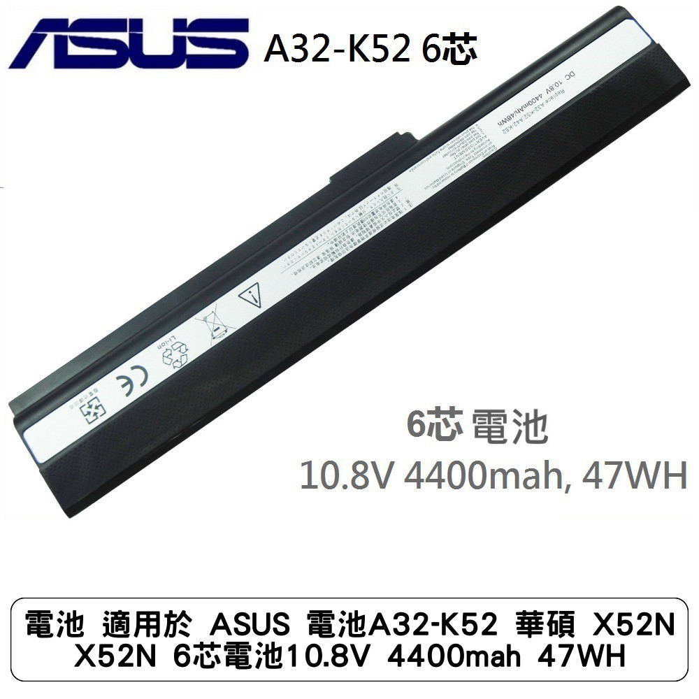 電池 適用於 ASUS 電池A32-K52 華碩 X52N X52N 6芯電池10.8V 4400mah 47WH