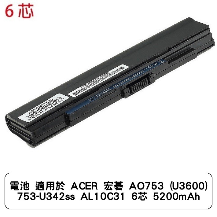 電池 適用於 ACER 宏碁 AO753 (U3600) 753-U342ss AL10C31 6芯 5200mAh