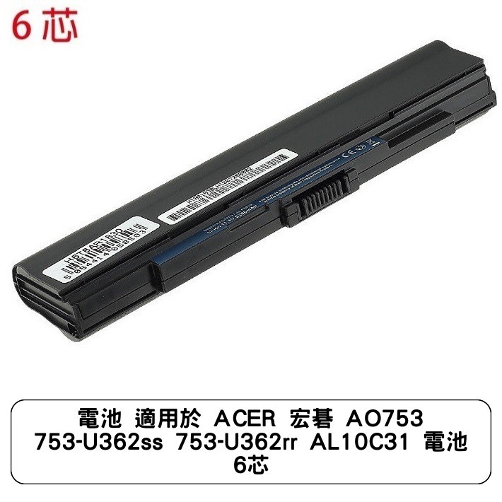 電池 適用於 ACER 宏碁 AO753 753-U362ss 753-U362rr AL10C31 電池 6芯