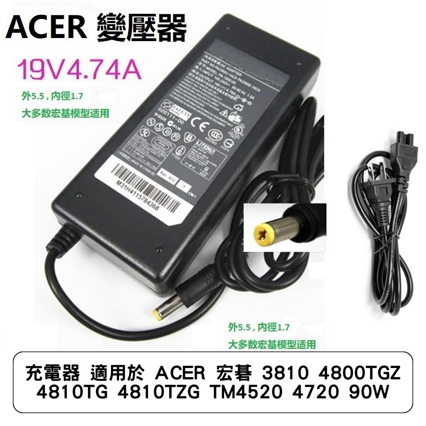 充電器 適用於 ACER 宏碁 3810 4800TGZ 4810TG 4810TZG TM4520 4720 90W