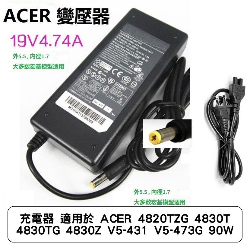 充電器 適用於 ACER 4820TZG 4830T 4830TG 4830Z V5-431 V5-473G 90W