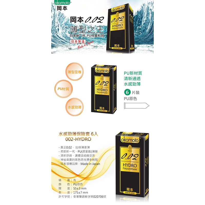 岡本002-HYDRO 水感勁薄保險套(6入裝)