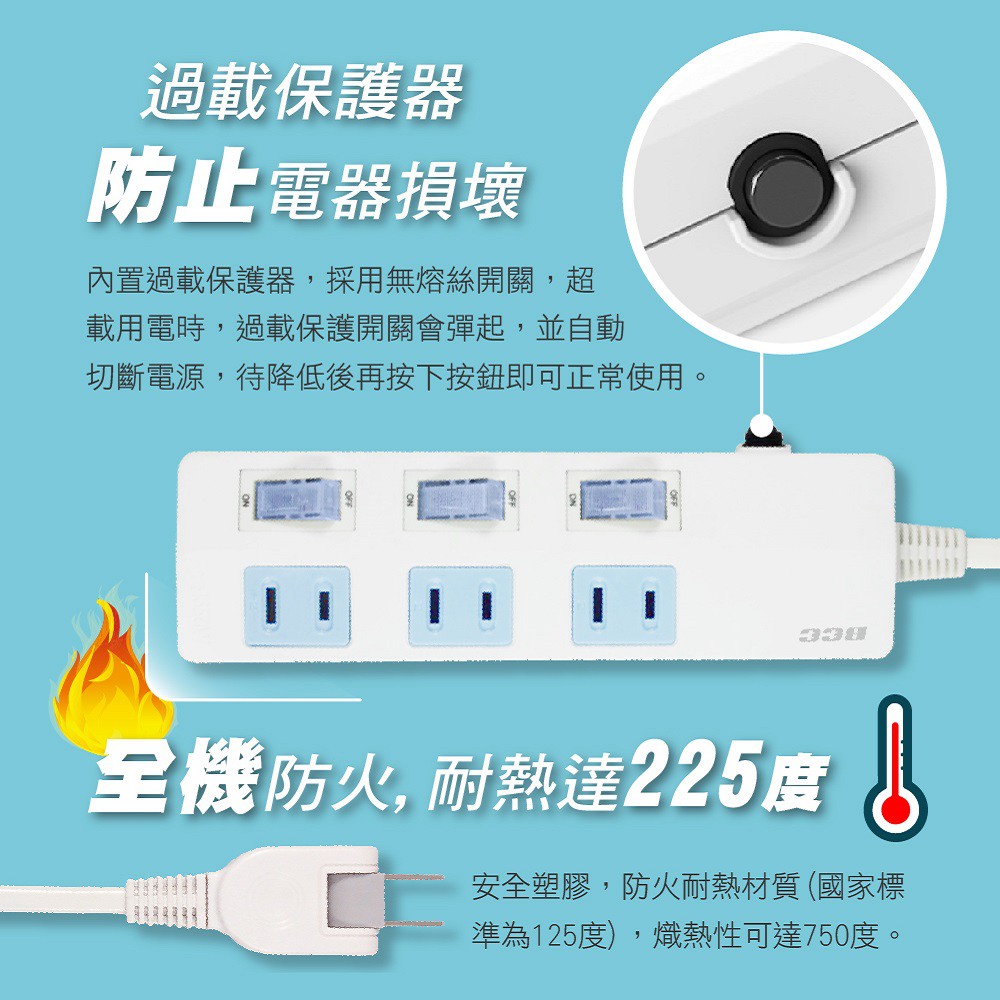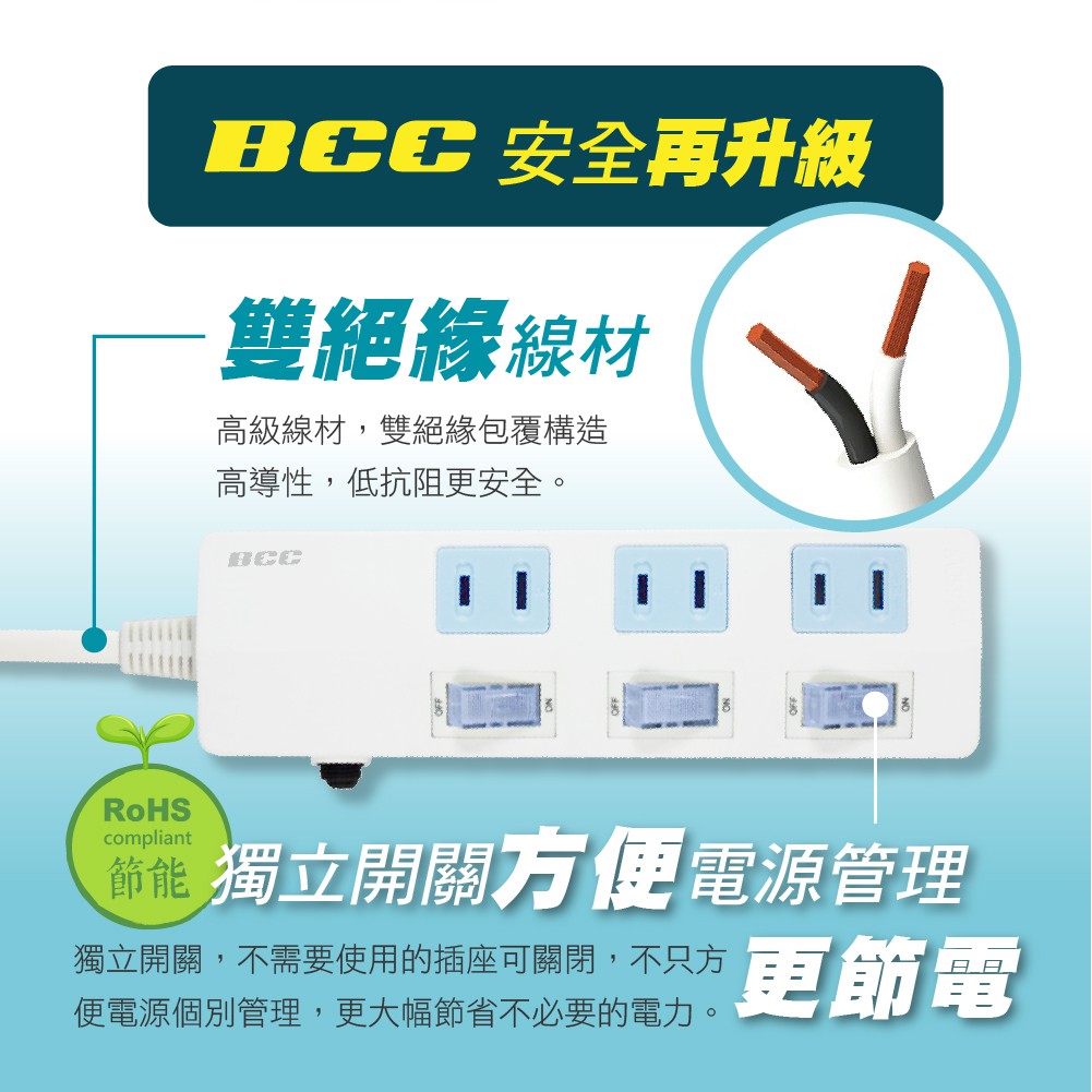 【BCC】3切3插延長線 (節電延長線、防火防雷、獨立開關延長線) FC123
