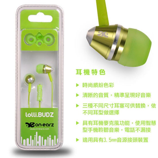 【On earz】LolliBUDZ 耳塞式耳機 (有線耳機、螢光色耳機、桃紅耳機、藍色耳機)