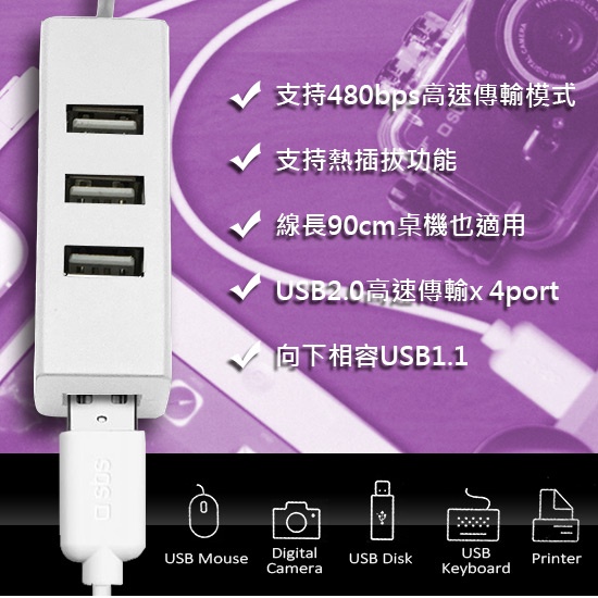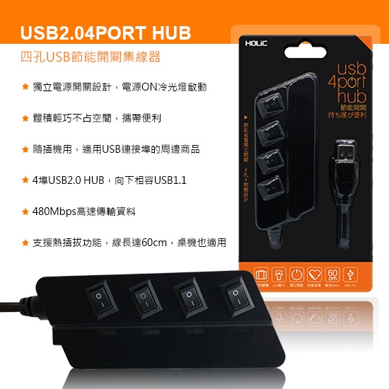 【HOLiC】USB 4port Hub 四孔集線器/四孔USB節能開關集線器