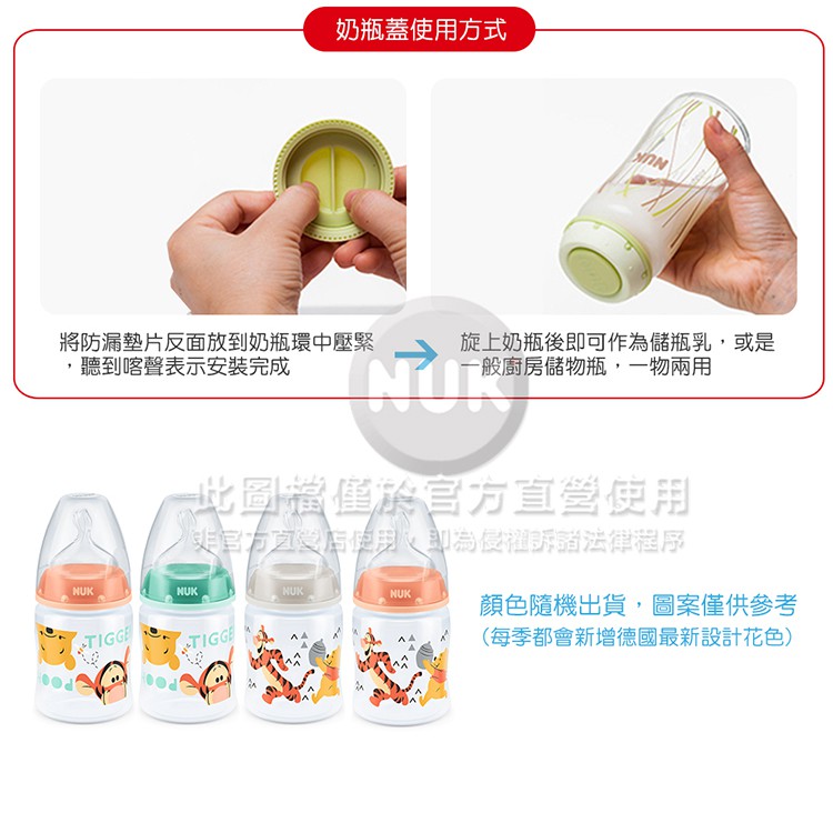 【NUK原廠直營賣場】【德國NUK】迪士尼寬口徑PP奶瓶300ml-附1號中圓洞矽膠奶嘴0m+(顏色隨機出貨)
