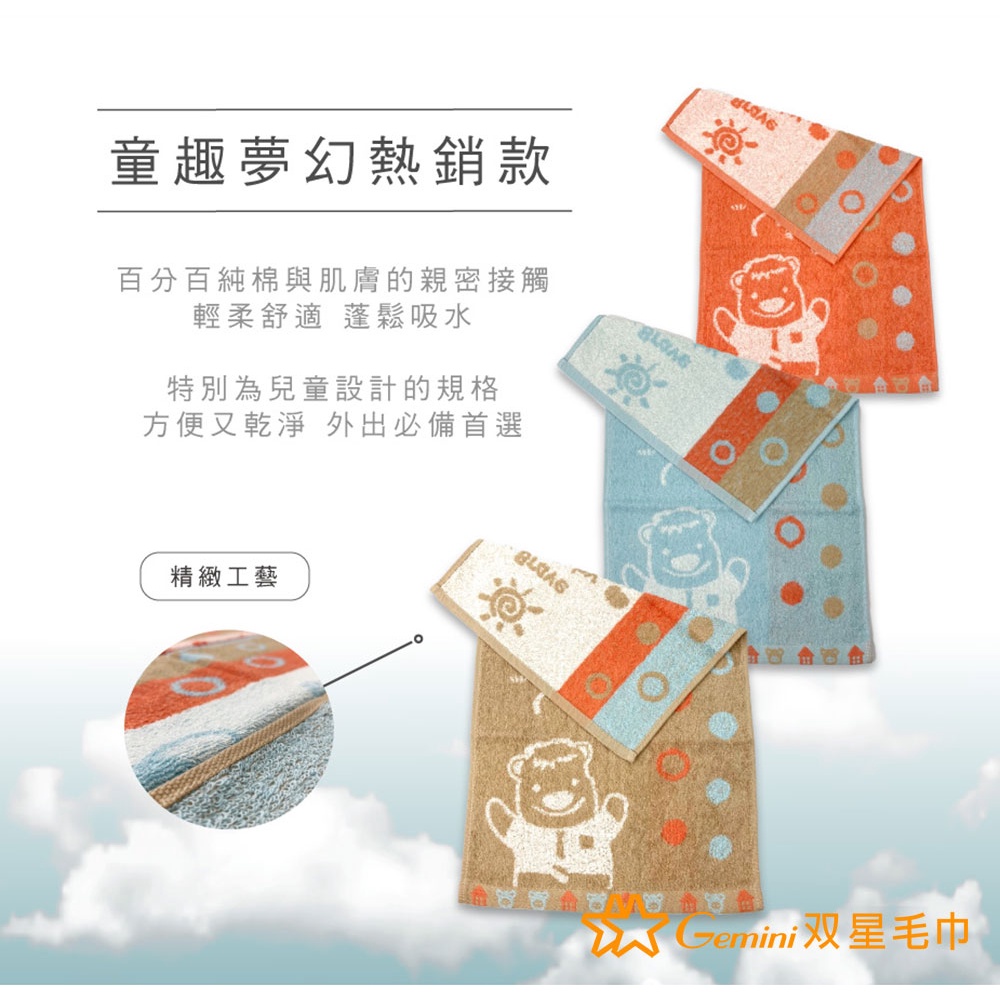【双星毛巾Gemini】雲端漫步的奶熊兒童毛巾(超值6入組)|優惠