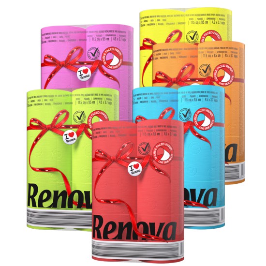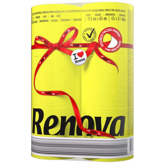 RENOVA 葡萄牙進口 彩色馬卡龍 捲筒衛生紙 豔陽黃 (1組6捲X150節)