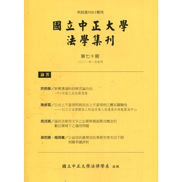 國立中正大學法學集刊第70期-110.01 國立中正大學財經法律學系 五南文化廣場 政府出版品
