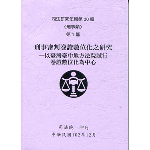 司法研究年報第30輯-刑事類 [九冊不分售]