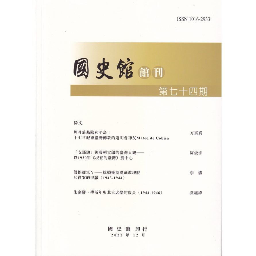 國史館館刊第74期(2022.12) 五南文化廣場 政府出版品 期刊