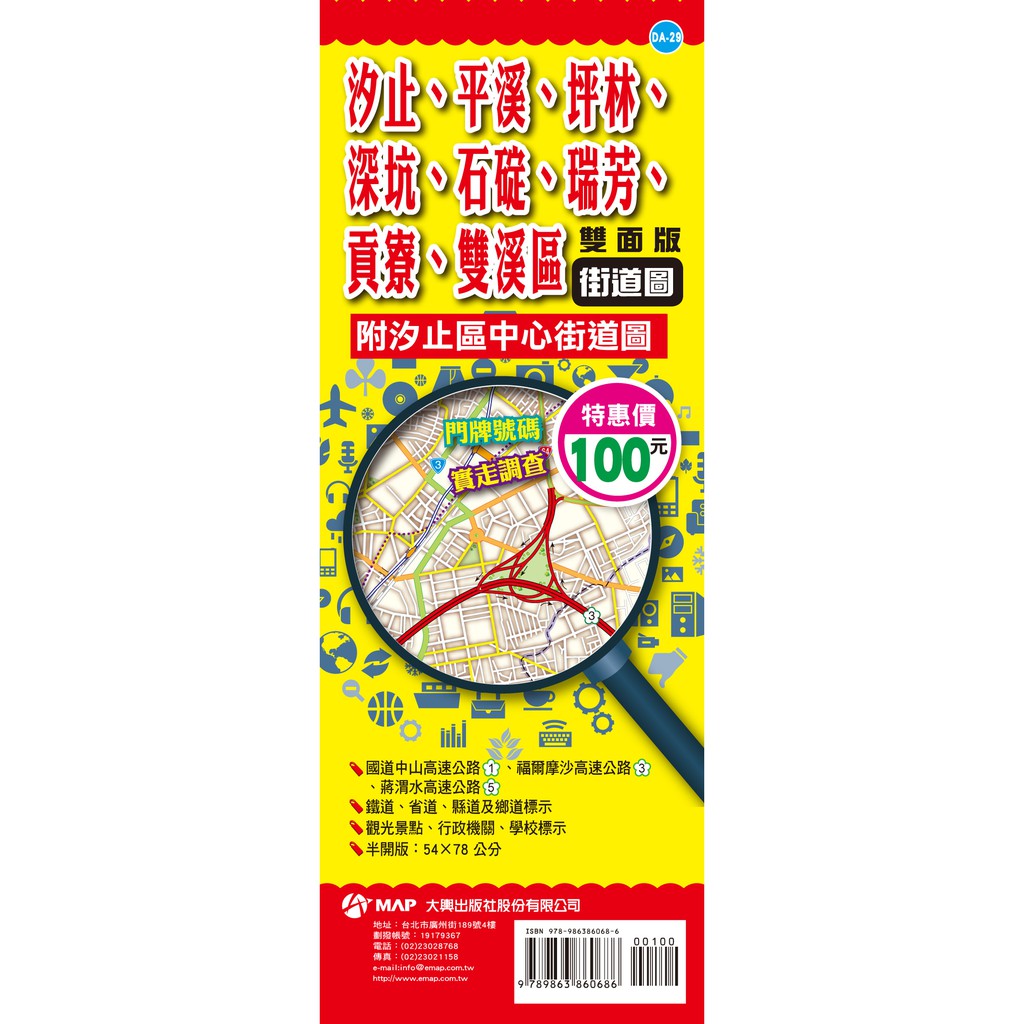 大輿 汐止、平溪、坪林、深坑、石碇、瑞芳、貢寮、雙溪區街道圖(雙面半開版54×78cm)/周宇廷 大輿 地圖