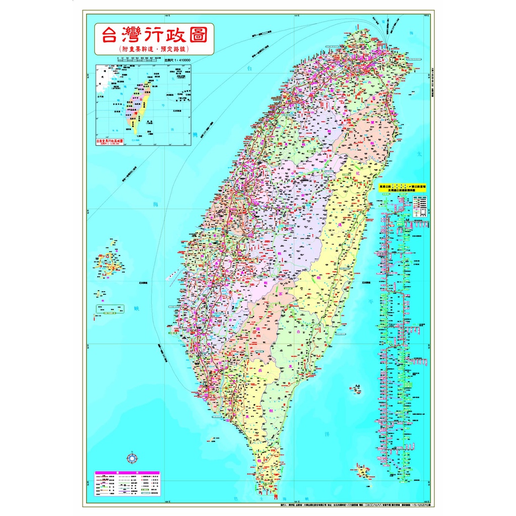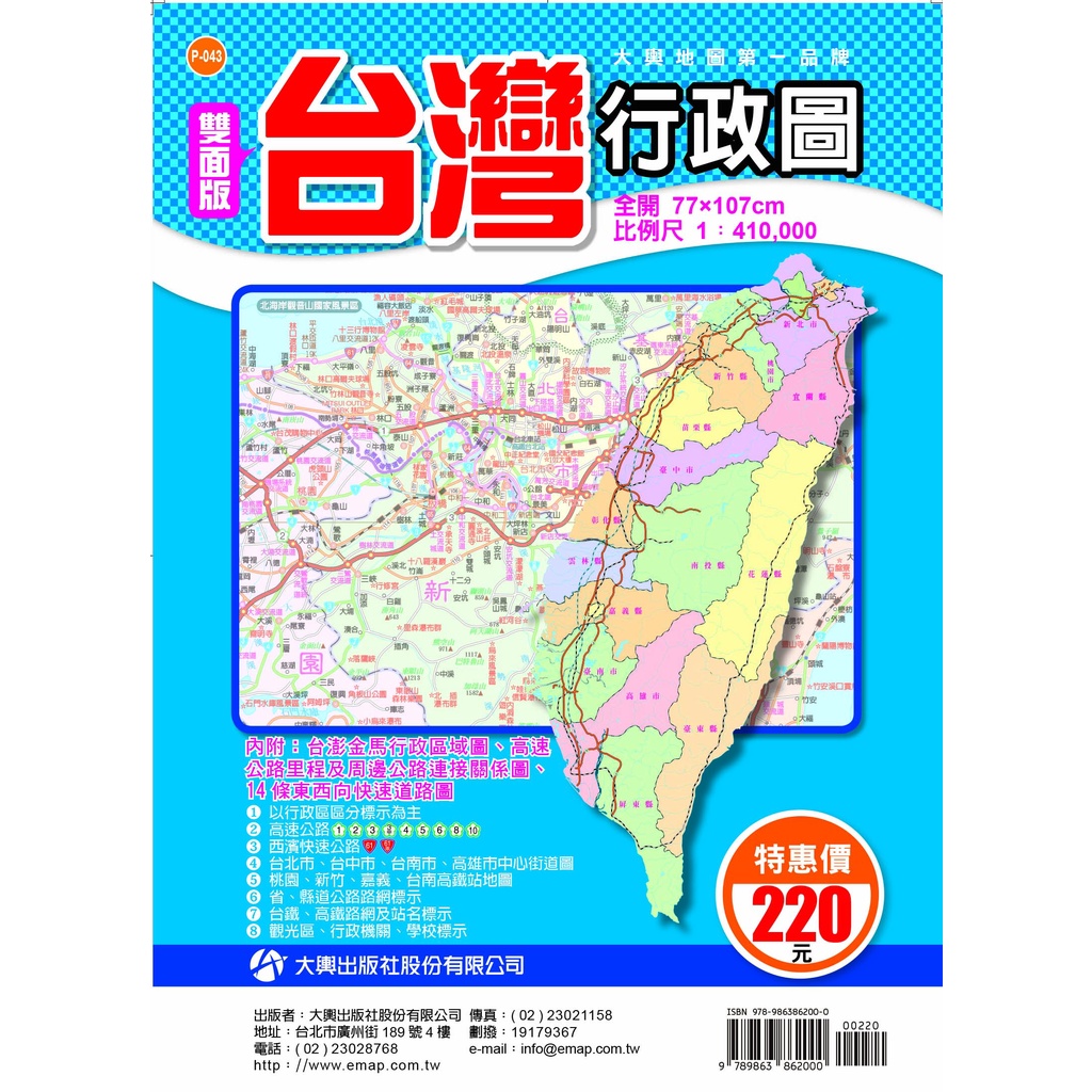 大輿 雙面版台灣行政圖(全開版107X77CM)/周宇廷 大輿 地圖