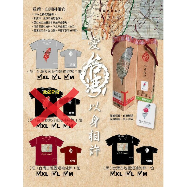 台灣古地圖短袖純棉T恤_紅色(M/L/XL/XXL)/周宇廷 大輿 地圖