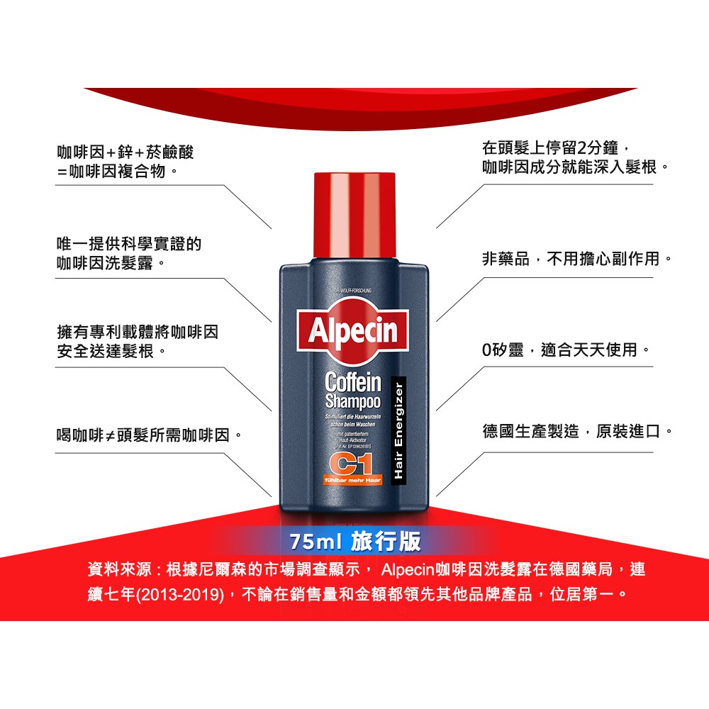 (小包裝旅行用)【Alpecin】強健髮根活性清潔 咖啡因洗髮露 75ml(2025/09/01)