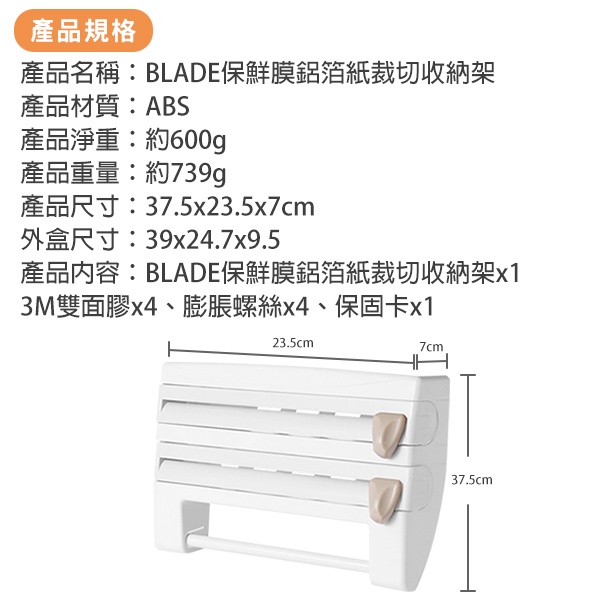 BLADE雙層保鮮膜鋁箔紙裁切收納架 台灣公司貨 紙巾架 切割器 廚房收納 現貨 當天出貨 諾比克