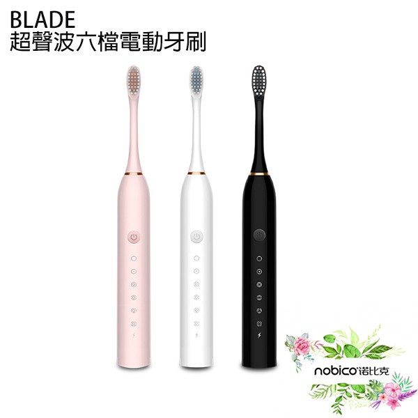 BLADE超聲波六檔電動牙刷 送4刷頭 電動牙刷 聲波震動 USB充電 現貨 當天出貨 諾比克
