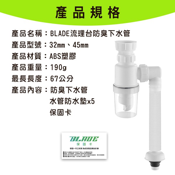 BLADE流理台防臭下水管 台灣公司貨 防蟲 廚房 洗手台 排水管 洗臉盆 水槽 現貨 當天出貨 諾比克