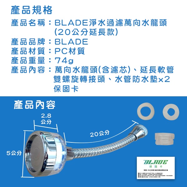 BLADE 淨水過濾萬向水龍頭 20公分延長款 台灣公司貨 增壓 省水 淨水 花灑 過濾 現貨 當天 出貨 諾比克