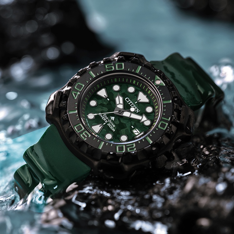 CITIZEN星辰PROMASTER超級鈦光動能復刻1982經典潛水錶-迷彩錶盤綠(BN0228-06W)店鋪限定
