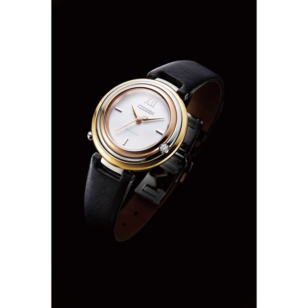 CITIZEN 星辰L系列限量鑽石光動能鹿皮腕錶-耀石黑32mm (EM0656-15A)