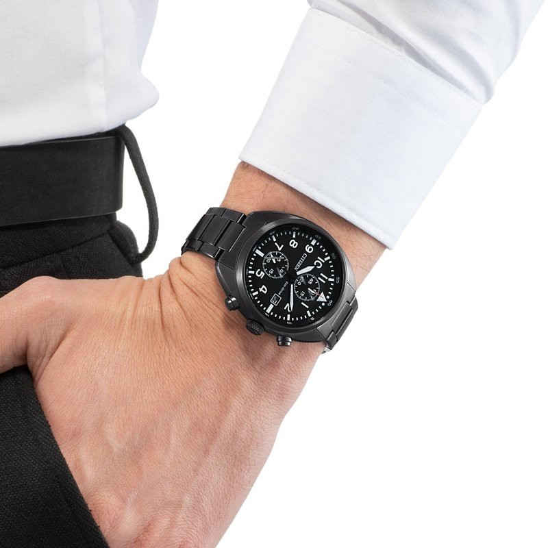 CITIZEN 星辰Chronograph經典碼錶計時日期顯示三眼鋼錶41mm-黑(CA7047-86E)