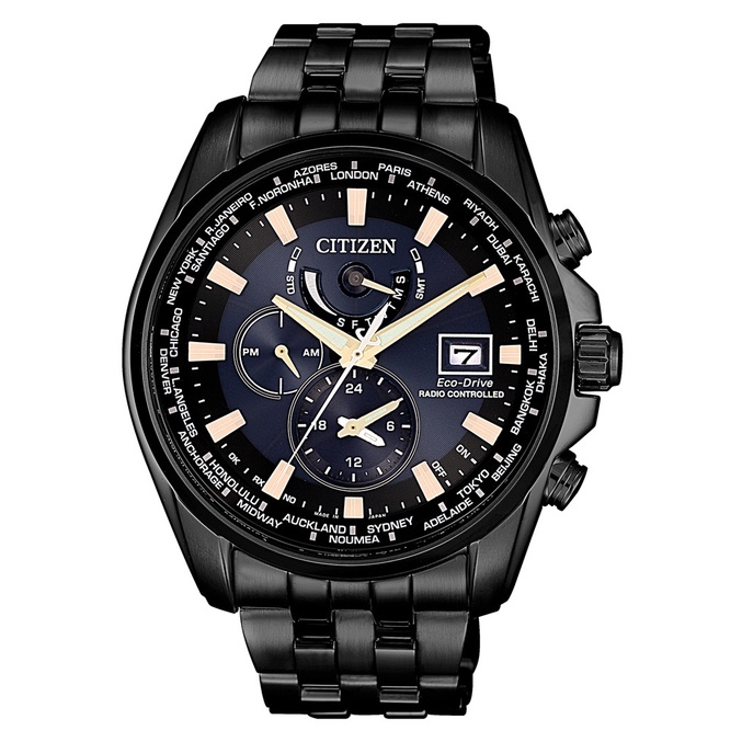 CITIZEN星辰GENT 即刻商務光動能三眼計時全球電波腕錶-銀藍44mm(AT9031-52L)