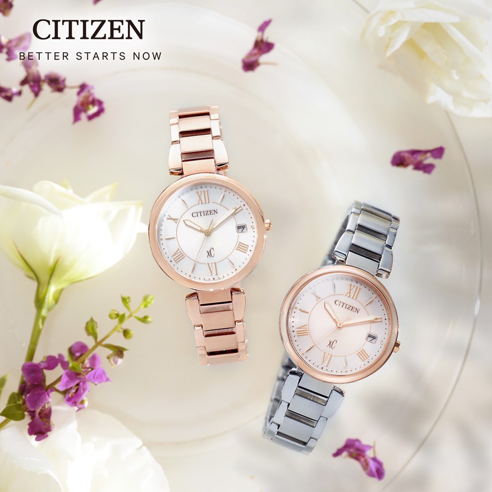 CITIZEN星辰XC光動能不鏽鋼藍寶石玻璃羅馬數字-玫瑰金33mm(EO1192-59A)