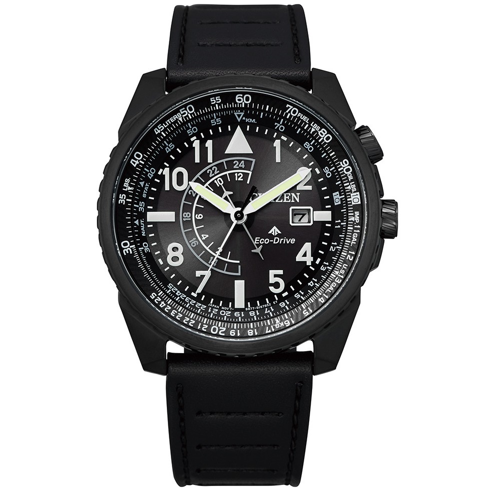 CITIZEN星辰PROMASTER光動能航空計算尺小牛皮系列-黑洞黑42.5mm(BJ7135-02E)