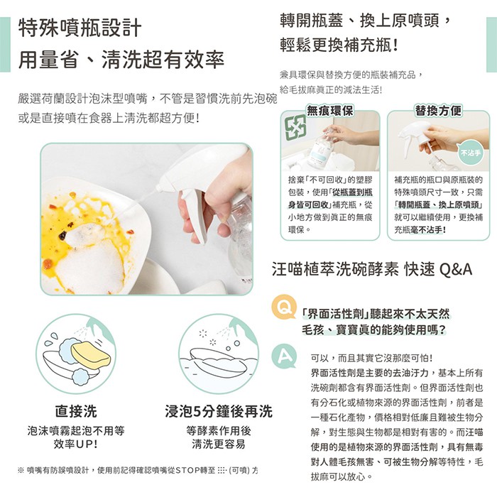 汪喵星球 植萃洗碗酵素 貓咪 寵物食器消毒滅菌 噴瓶 補充瓶 500ml