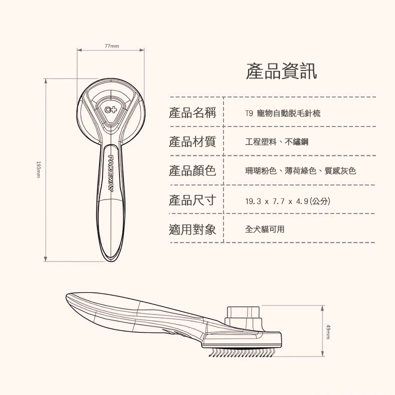 T9 寵物一鍵脫毛針梳 不鏽鋼針梳 寵物梳子 除廢毛 一鍵除毛