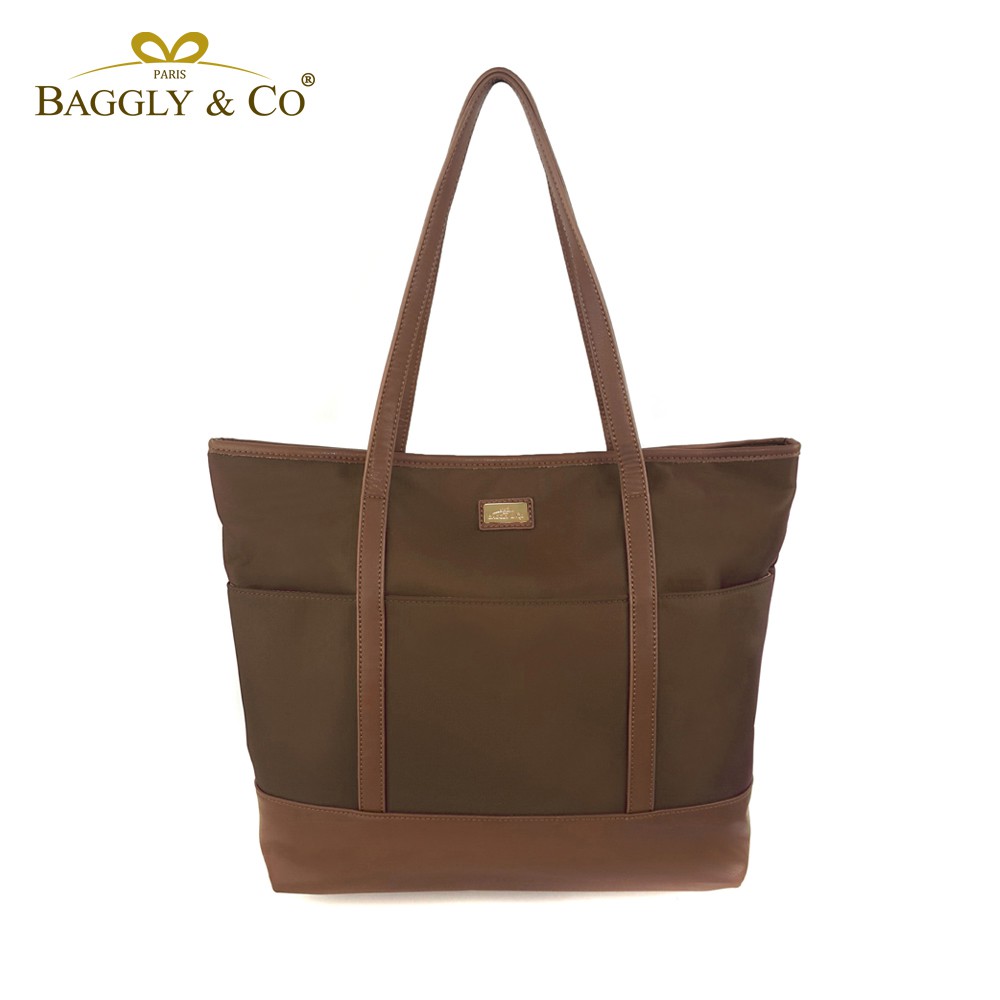 【BAGGLY&CO】真皮尼龍輕量防盜托特包(二色)