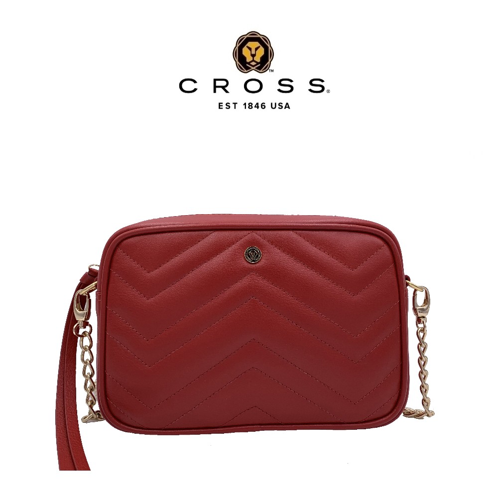 【CROSS】頂級 小牛皮 山形紋 拉鍊 肩背包 限量1折 全新 專櫃 展示品(紅色)