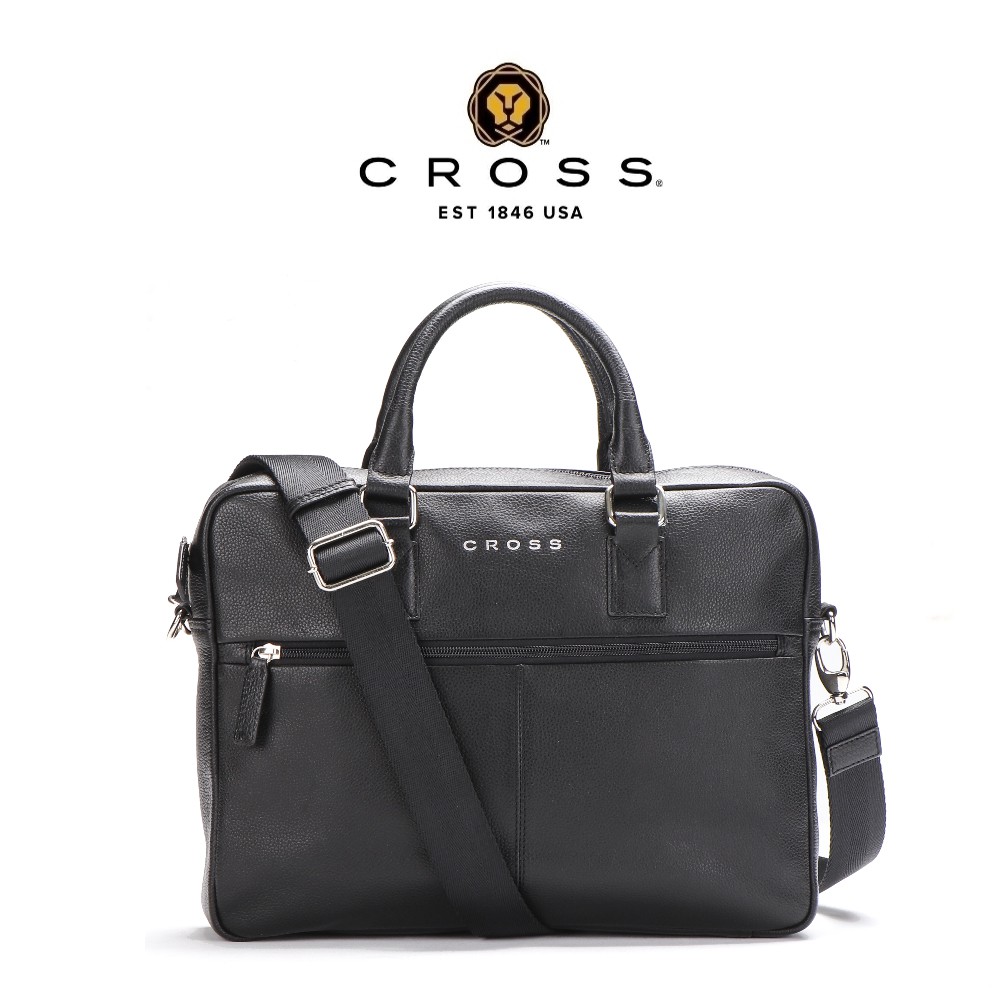 【CROSS】限量1折 頂級 小牛皮 手柄 拉鍊 手提 / 斜背 公事包 湯米系列 全新 專櫃 展示品 (14吋 黑色)