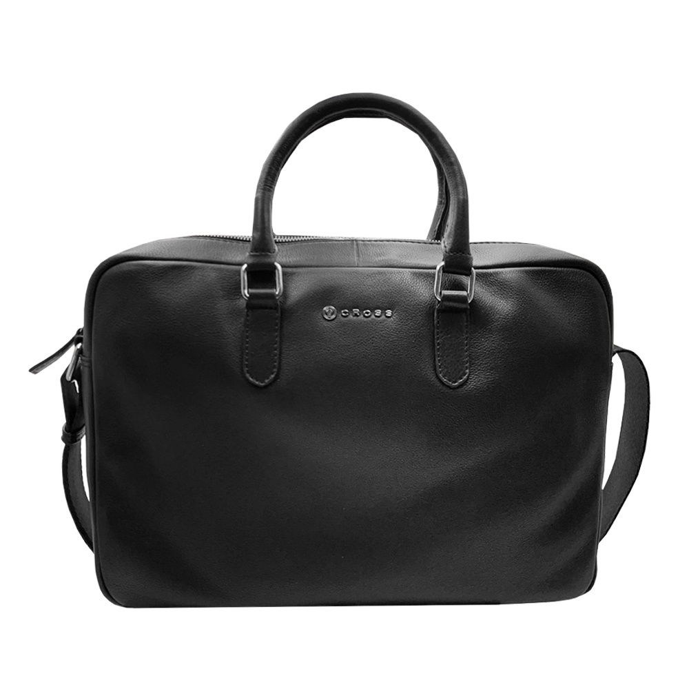 【CROSS】限量1折 頂級 小牛皮 手柄 拉鍊 手提 / 斜背公事包 賈維斯系列 全新 專櫃 展示品 (15吋 黑色)
