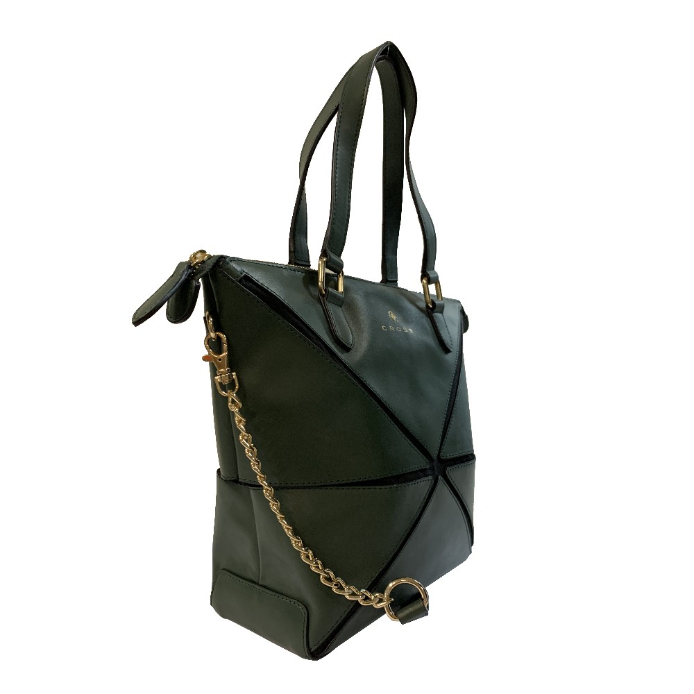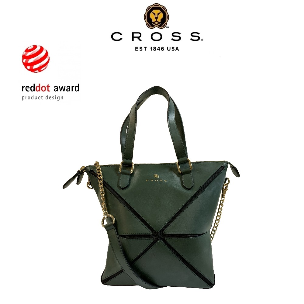 【CROSS】 德國紅點大獎 頂級 NAPPA 小牛皮 幾何 側背包 全新 專櫃 展示品(墨綠色)[限量1.5折]