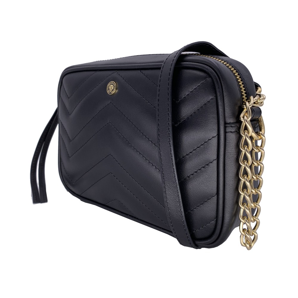 【CROSS】頂級 小牛皮 山形紋 拉鍊 肩背包 限量1折 全新 專櫃 展示品 (黑色)