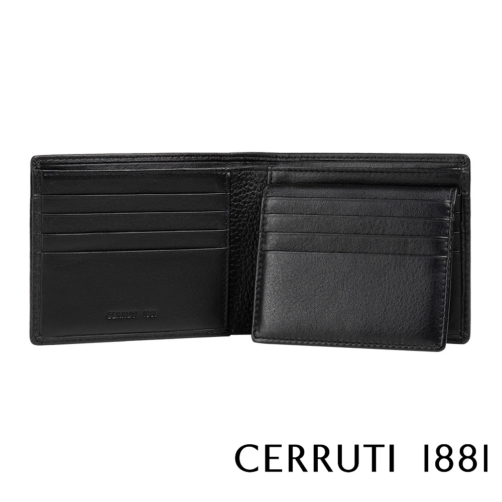 【Cerruti 1881】頂級 義大利 小牛皮12卡短夾 JULIAN (黑色 CEPU05545M)