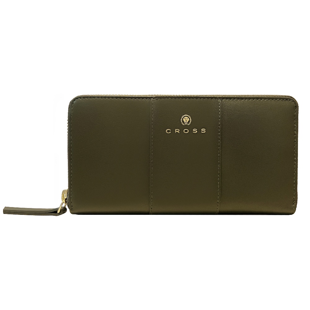 【CROSS】 賈姬限定款 頂級 NAPPA 小牛皮 拉鍊長夾 長夾夾 附高貴 送禮 提袋 (墨綠)