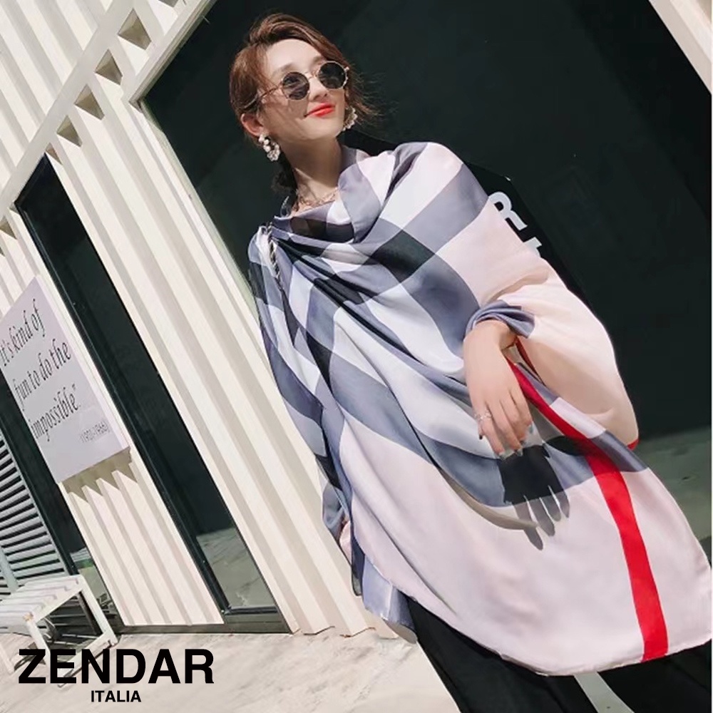 ZENDAR 頂級 格紋 珍珠絲 絲巾
