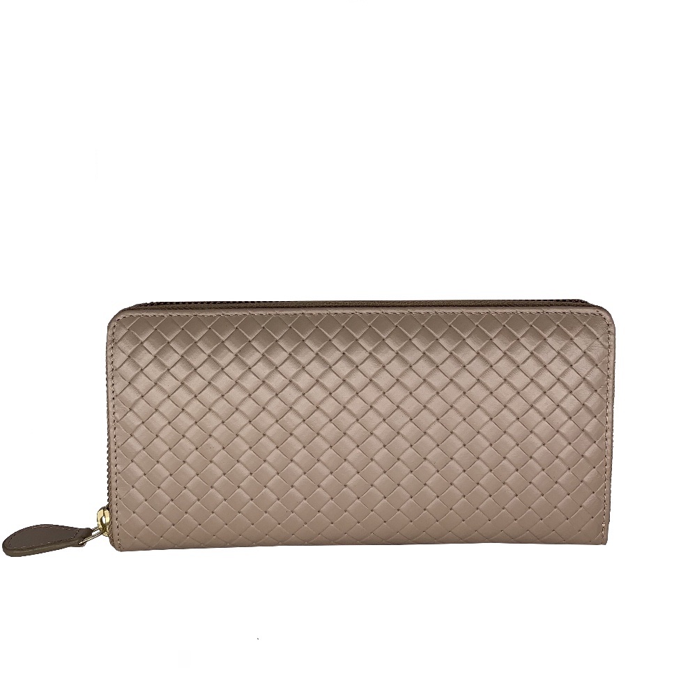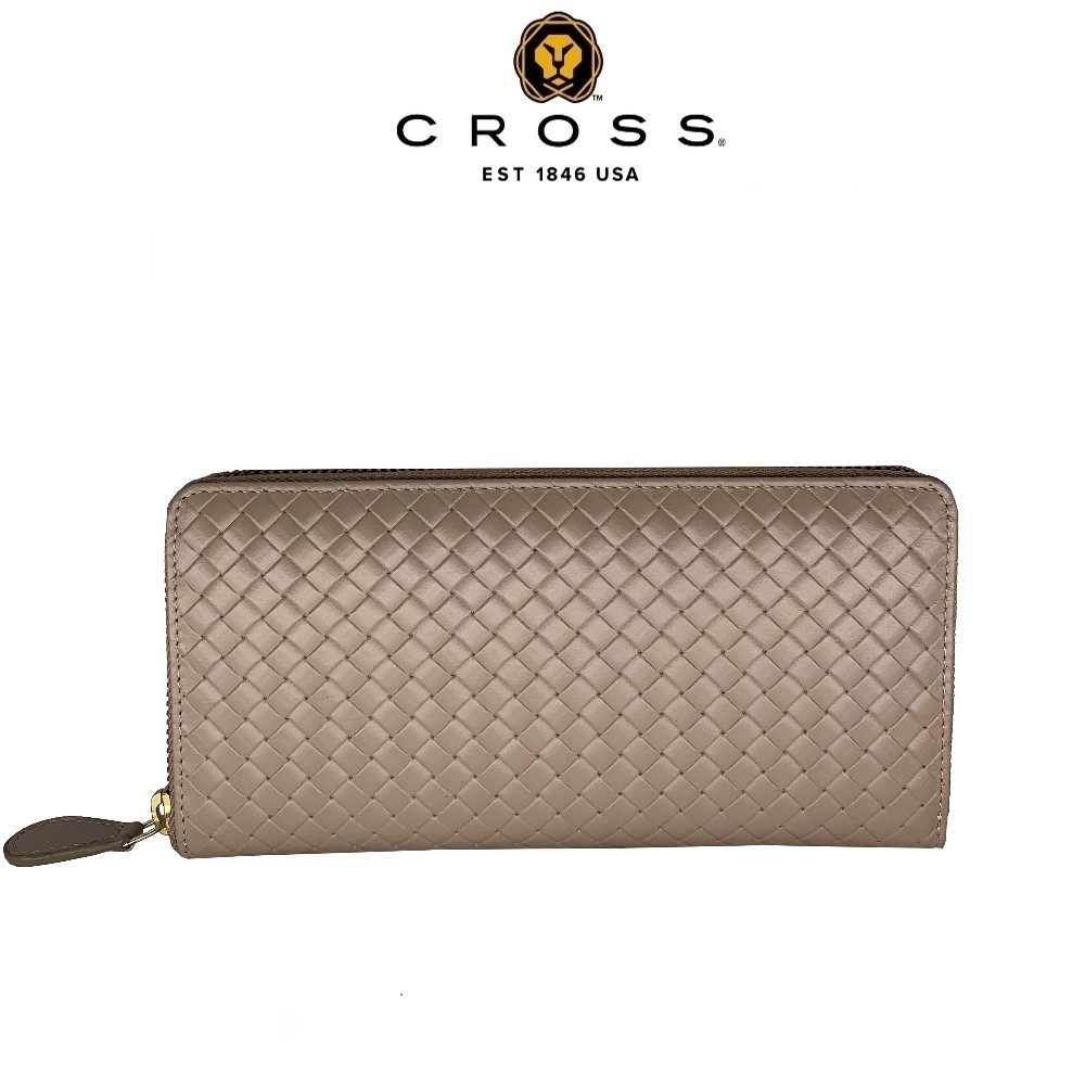 【CROSS】頂級 編織紋 小牛皮 拉鍊長夾 長夾 焦糖奶茶 附高貴 送禮 提袋